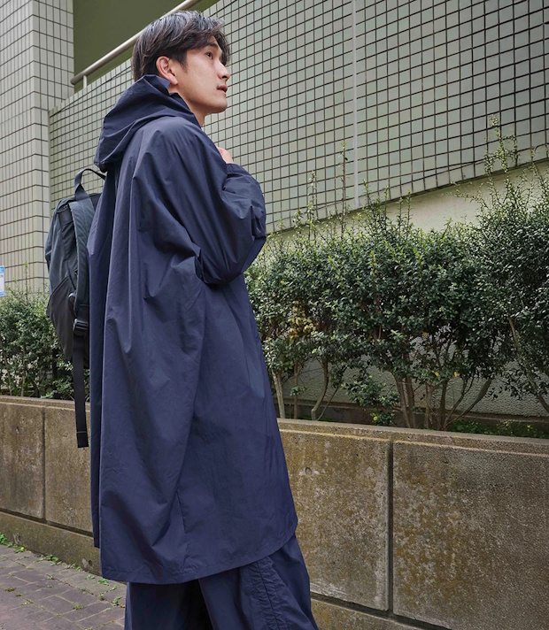 Innovative japanische Textiltechnologie trifft auf modernes Design: Dieser ultraleichte Regenponcho hält auch nach über 100 Waschgängen zuverlässig trocken und fühlt sich dabei seidig-leicht wie eine Feder an. Das Material wurde von Komatsu Matere entwickelt. Die spezielle „Dantotsu Water Repellent“-Technologie bietet extreme Wasserabweisung und hohe Langlebigkeit, unter Berücksichtigung von Umwelt- und Sicherheitsaspekten.