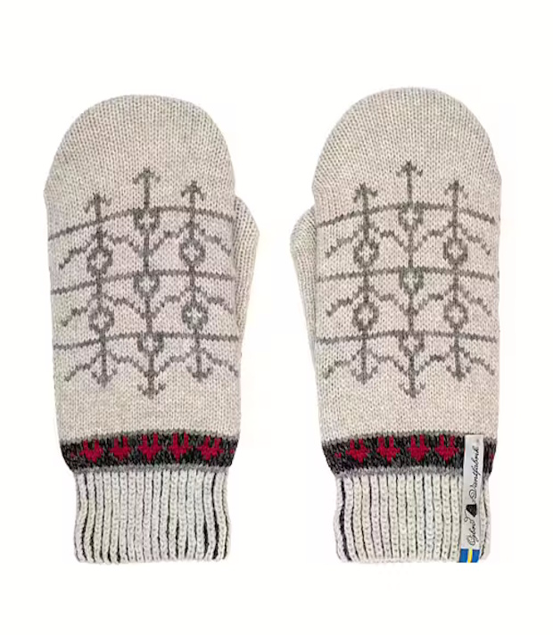 Die Handschuhe von Öjbro’s Handschuhmanufaktur sind alles Originale, welche Ase mit den Stickmustern der unterschiedlichen schwedischen Regionen strickt. Jedes Muster erzählt eine Geschichte.