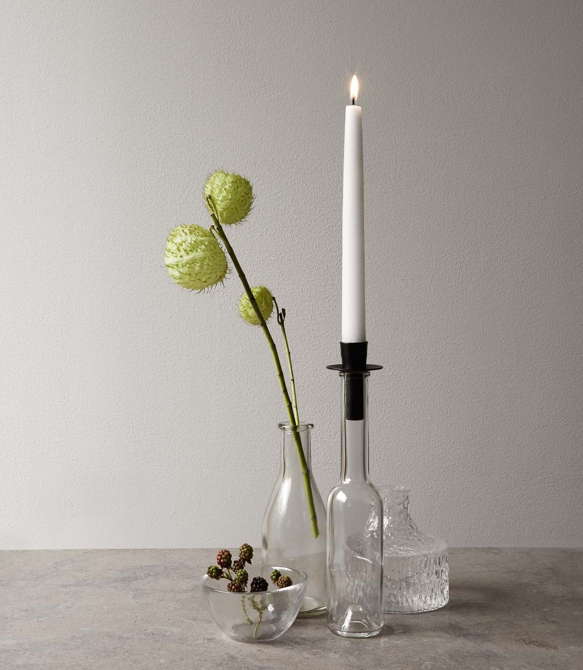 Stehen bei dir auch noch Gläser oder Flaschen herum, die du zu schön zum wegschmeissen findest? Dann funktioniere sie doch zu einem Kerzenleuchter um! Schon hast du bei jedem Kaffee, Dinner oder Apéro ein stilvolles Kerzenlicht. Der Kerzenhalter passt auf alle handelsüblichen Flaschen, Gläser und Vasen und lässt sich mit Stabkerzen nach Wahl bestücken. Passende handgefertigte Kerzen aus hochwertigem Parafin findest du bei uns von Kunstindustrien Dänemark.
