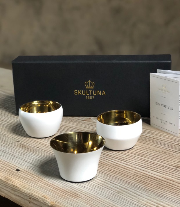 Die Skultuna Messingfabrik produziert ununterbrochen seit 1607. Jedes Jahr etwa 500 Kerzenleuchter, tausende von Kerzenhalter und ebenso viele Manschettenknöpfe werden rund um die Welt verschifft. Auch heute arbeitet man mit namhaften Designern wie Monica Förster, Thomas Sandell und Claesson Koivisto Rune. Von den letzteren kommen auch die schönen Teelichthalter KIN, welche einzigwert nun in ihre Jahrhundertkollektion aufgenommen hat.