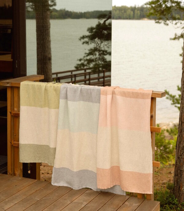 Die Saunatücher von Lapuan Kankurit werden gerne verschenkt. Mit einer Grösse von 180x85cm sind sie die perfekte Liegeunterlage auch für grössere Saunagänger oder Strandbesucher. Trotz deren Grösse tragen die Tücher infolge dünner Leine wenig auf und brauchen damit wenig Platz in der Sporttasche oder im Rucksack.