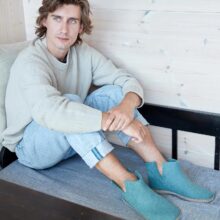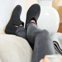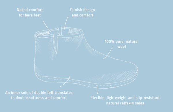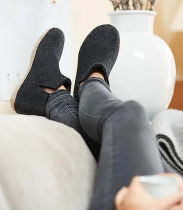 Die Filzfinken aus Dänemark sind seit Jahren eines der Lieblingsprodukte unserer Kundschaft. Ein natürliches Produkt aus 100% reiner Gotland-Pelzschafwolle und Kalbsleder. Die Wolle wird nicht chemisch behandelt, was man auch daran erkennt, dass manchmal kleine Pflanzenreste im Filz vorkommen. Die Ledersohle wird pflanzlich gegerbt, sorgfältig angeklebt und genäht. Die Finken sind sowohl auf Parkett wie Steinböden rutschsicher (nicht bei nassen Böden!) und dank leichtem Fussbett geniesst man einen angenehmen Tragekomfort. Da Wolle atmungsaktiv ist und bis zu 35% Feuchtigkeit absorbieren kann, reguliert sich das Fussklima und man hat immer schön warme und trockene Füsse. Deshalb am Besten barfuss in die Finken!