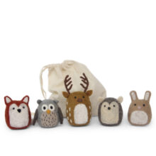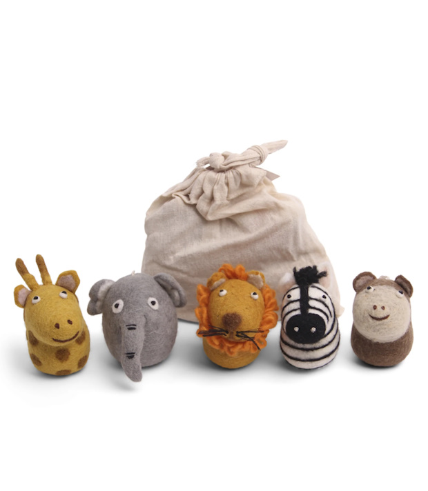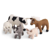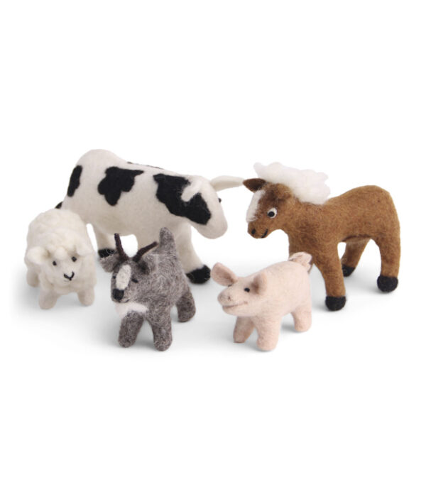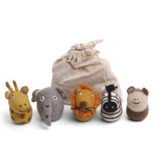 Diese tolle, ungefährliche und handgearbeitete Tierbande wird bald zum besten Spielgefährten der Kleinsten. Die Filztiere werden in hoher Qualität von Hand in Nepal gefertigt, deshalb ist jedes Tier ein Unikat. Keines gleicht 100% dem anderen. Das ganze Projekt wird als Fairtradeprojekt von der dänischen Firma en Gry & Sif begleitet. Höhe der Tiere ca. 10cm.