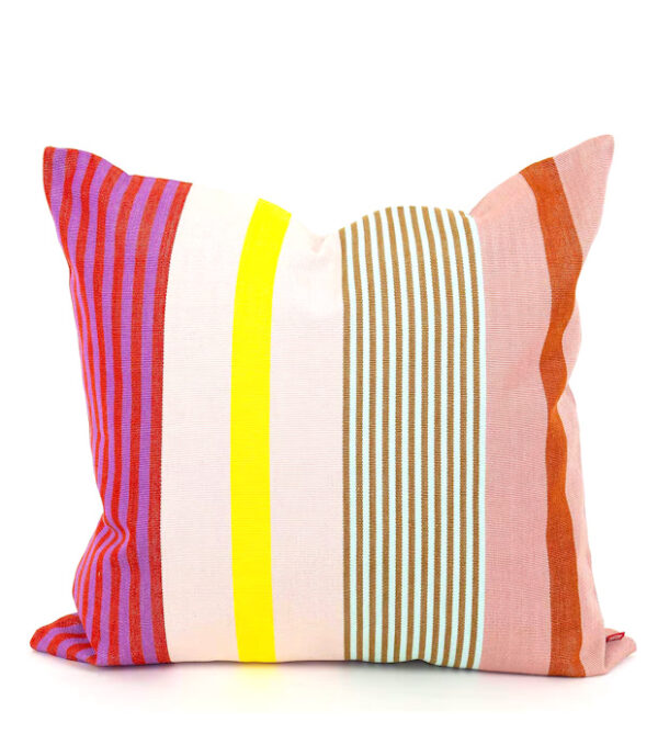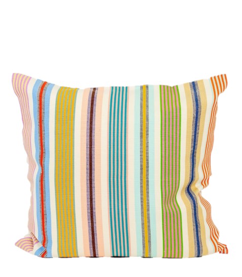 Diese fröhlich bunten Kissenbezüge aus robuster Baumwolle werden nach alter Webkunst guatemaltekischer Familien in einem Fairtradeprojekt von A World of Craft gewoben. Die Kissen können bei 30 Grad Feinwäsche gewaschen werden. Innenkissen 50x50cm mit Federn können separat dazu bestellt werden.