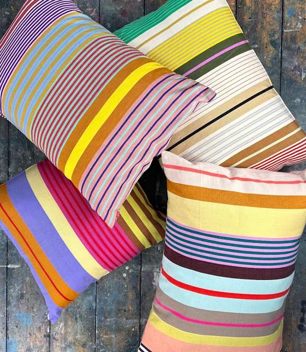 Diese fröhlich bunten Kissenbezüge aus robuster Baumwolle werden nach alter Webkunst guatemaltekischer Familien in einem Fairtradeprojekt von A World of Craft gewoben. Die Kissen können bei 30 Grad Feinwäsche gewaschen werden. Innenkissen 50x70cm mit Federn können separat dazu bestellt werden.