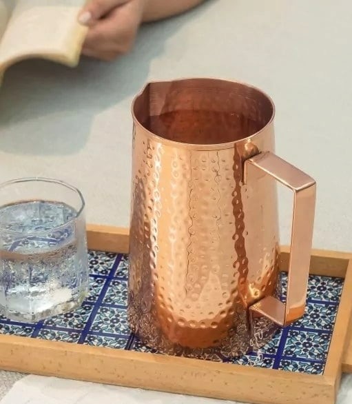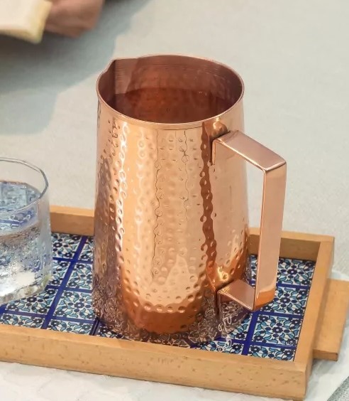 Lassen Sie ihr Wasser über Nacht im Krug ruhen. Die Krüge sind ausschliesslich für stilles Wasser geeignet. Wichtig: vor dem ersten Gebrauch sollte der Krug unbedingt gut ausgewaschen werden. Nach Gebrauch kann er mit etwas Spülmittel und warmem Wasser ausgespült werden. Die Kupferkrüge dürfen nicht in die Waschmaschine. Da die Krüge aus 99.7% reinem Kupfer bestehen, patiniert dieses nach einiger Zeit. Um den ursprünglichen Glanz wieder herzustellen, kann man auf eine Scheibe Zitrone etwas Salz, Essig oder Backpulver streuen und danach mit der Zitronenscheibe die Oberfläche des Krugs abreiben. Die Zitronen-Salz Mischung löst die Patina und stellt den ursprünglichen Glanz wieder her. Bei Ablagerungen im Krug können diese ganz einfach mit etwas Zitronensäure und warmem Wasser gereinigt und entfernt werden. Richtig genutzt hält dieser Krug über Generationen! Der Krug ist nicht für heisse oder kohlensäurehaltige Getränke geeignet.