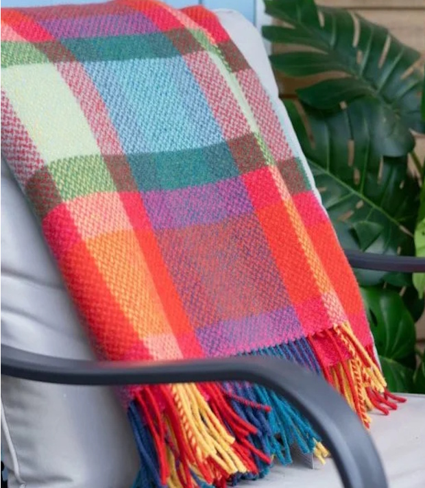 Hüllen Sie sich in puren Luxus: Dieses edle Plaid aus 95 % Merinowolle und 5 % Kaschmir vereint außergewöhnliche Weichheit mit angenehmer Wärme. Exklusiv in Irland gewebt, überzeugt es durch seine hochwertige Verarbeitung und seinen zeitlosen Look in Farben die fröhlich stimmen. Ob an kühlen Abenden auf dem Sofa oder als stilvolles Highlight in Ihrem Wohnraum – dieses Plaid verleiht jedem Ambiente eine besondere Note. Auch als geschmackvolles Geschenk ist es eine ausgezeichnete Wahl. Ein vielseitiges Wohnaccessoire für alle, die Qualität, Komfort und Design schätzen. Grösse 136x180cm.