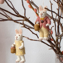 Die Osterhasen von Sif och Gry werden nicht nur in liebevoller Handarbeit gefertigt, sondern auch noch unter sozialen und fairen Bedingungen. Wie alle Filzprodukte von Gry och Sif. Die Häschen können sowohl gestellt, aufgehängt oder sitzend plaziert werden. Für den Osterbaum, als Tischdekoration oder aufs Ostergeschenk! Grösse ca. 15cm.