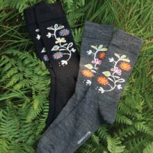 Die Socken mit den fröhlichen Mustern von Bengt & Lotta aus der Weberei Cai in Schweden sind bei jung und alt beliebt, ob zum Wandern, Tennisspielen oder einfach so als stylishes Accessoire und Geschenk. Der grosse Anteil an Merinowolle hält bei jeder Aktivität trocken und angenehm warm. Merinowolle ist ein natürlicher Wärmeregulator, so können die Socken sowohl im Sommer wie im Winter getragen werden. Zudem werden diese Socken auch wegen ihrer guten Strapazierfähigkeit und Langlebigkeit geschätzt. Ideal auch auf Reisen, da sich diese einfach von Hand auswaschen lassen und im Nu trocknen. Alle Muster gibt es in zwei Einheitsgrössen 35-39 und 40-45 und sind sowohl für Damen wie Herren geeignet.
