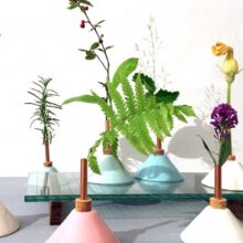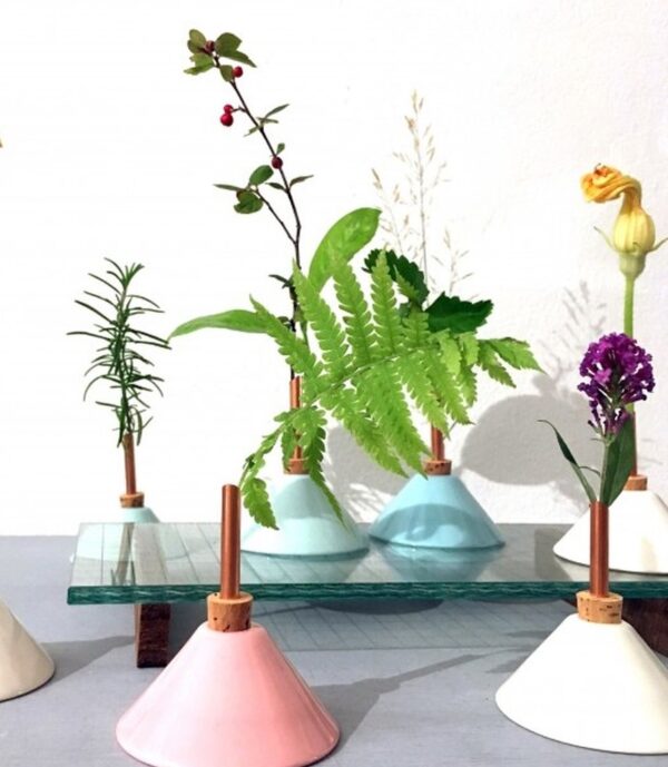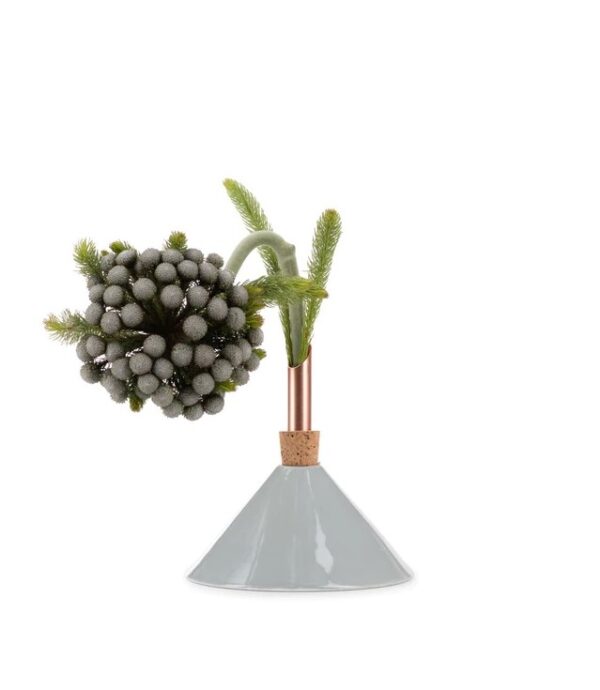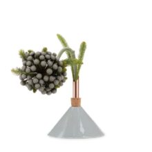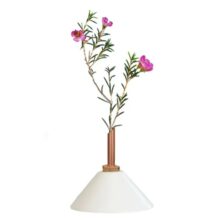 Die Consilium-Vasen wurden von der Künstlerin Eva Levin entworfen, um einzelne Blumen, Zweige oder Blätter schön zu präsentieren. Sie wollte damit eine ganz neue Art kreieren, Pflanzen auszustellen. Die schönste Wirkung kriegt man, wenn man verschiedene Vasen von Consilium kombiniert. Man füllt die Vasen einfach mit Wasser in dem man den Korken wegzieht. Das Kupfer erhält mit der Zeit seine ganz eigene Patina. Der Ton sollte von Hand gewaschen und vorsichtig getrocknet werden, nicht in den Geschirrspüler.